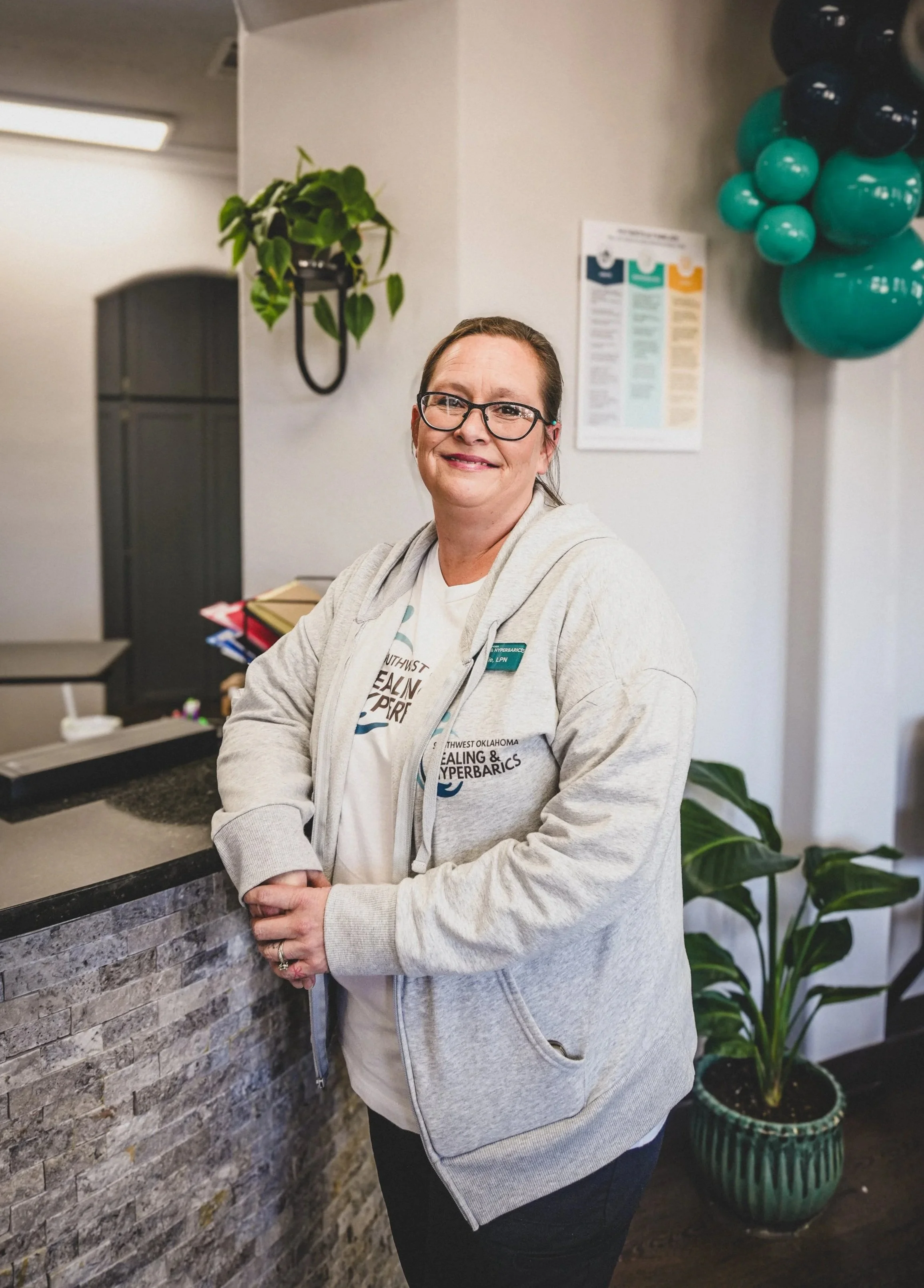At Southwest Oklahoma Healing & Hyperbarics, we are more than a wound care clinic - we are a team grounded in dedication and purpose, providing care that transcends the traditional medical experience. We understand every wound carries a story and every patient deserves to feel seen, supported, and truly valued. Over time, our patients become like family and we’re honored to share in their journeys. Our practice was created to restore hope and healing through expert treatment, meaningful connection, and a committment to walk beside each patient on their journey toward healing.